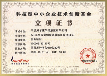科技型中小企業(yè)技術(shù)創(chuàng)新基金立項(xiàng)證書