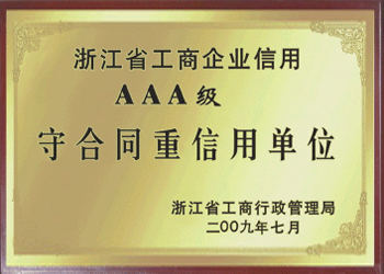 浙江省工商企業(yè)信用AAA級(jí)守合同重信用單位